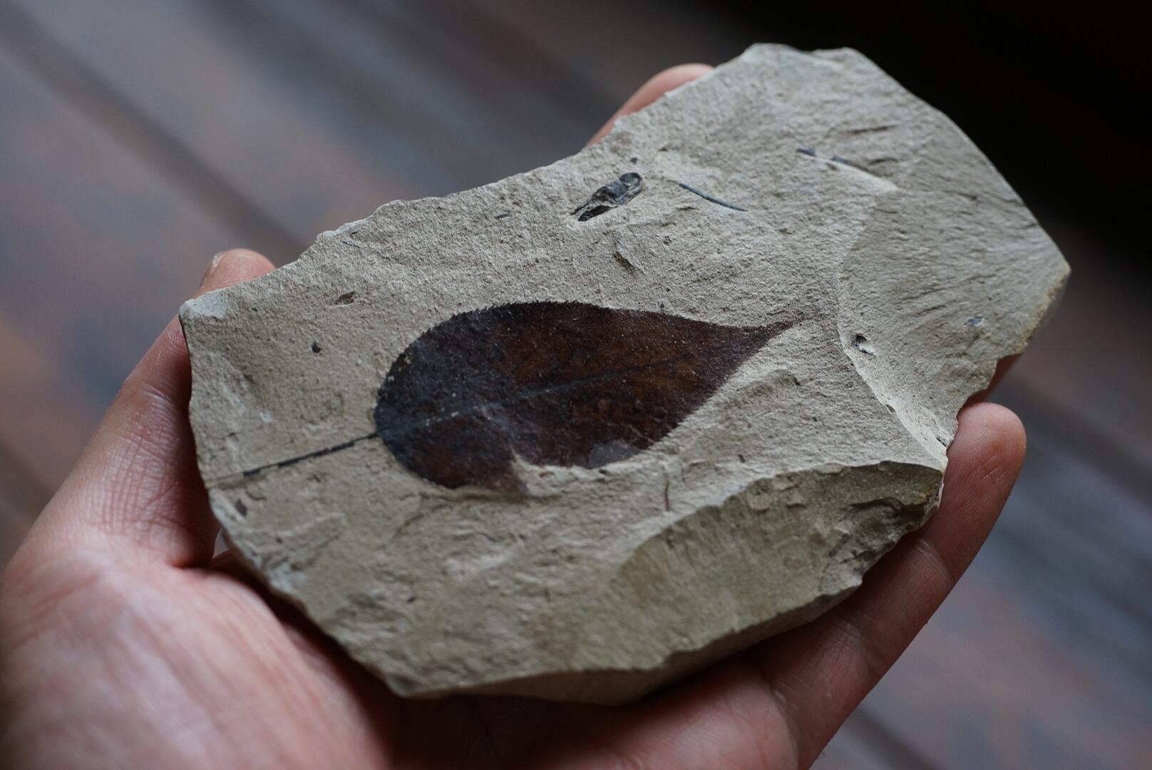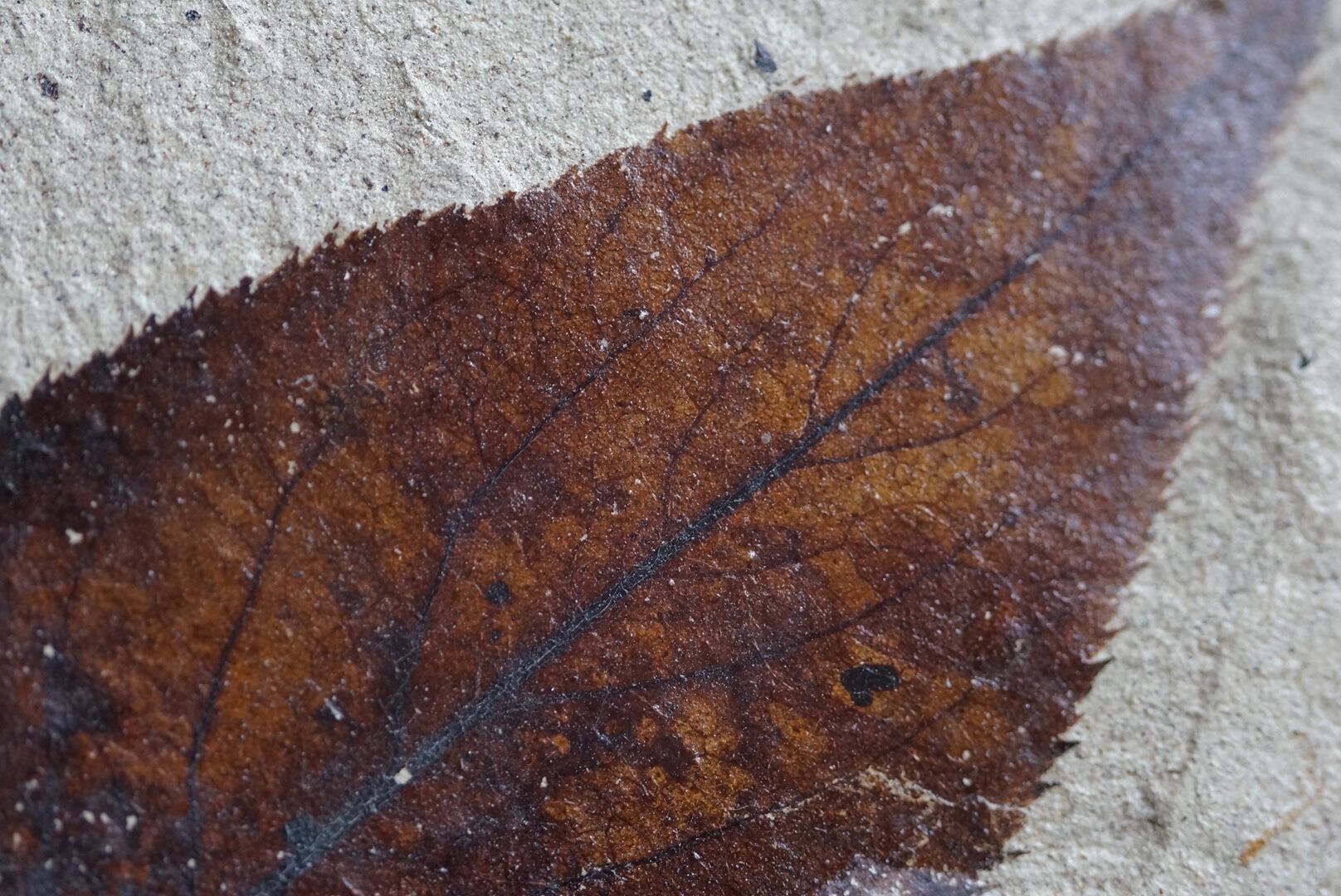 栃木県那須塩原市では本品のように葉脈のはっきりした美しい化石が産出されます。