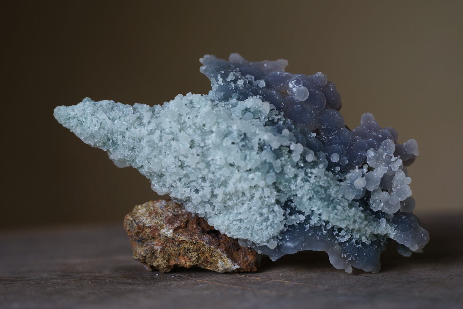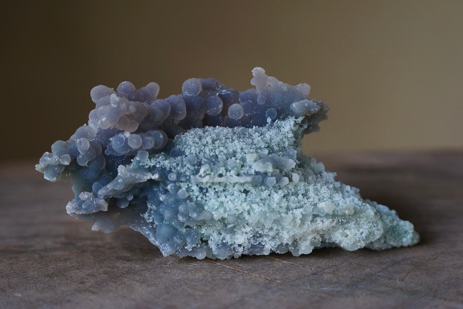 柔らかそうな粒状のカルセドニーが集合し、矢尻のように尖った造形を成しています。