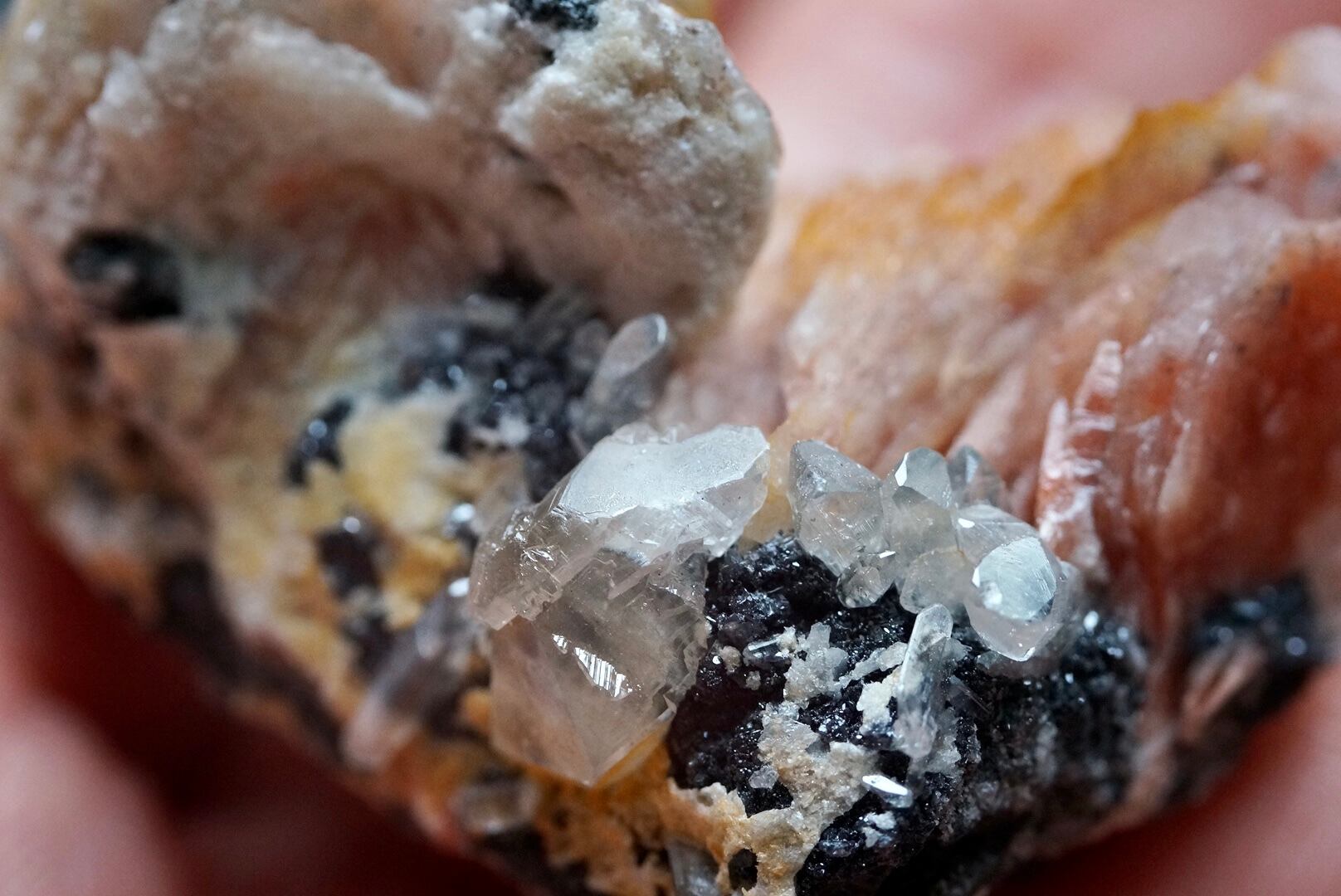 紅白のギザギザとした双峰がバライト(重晶石)、