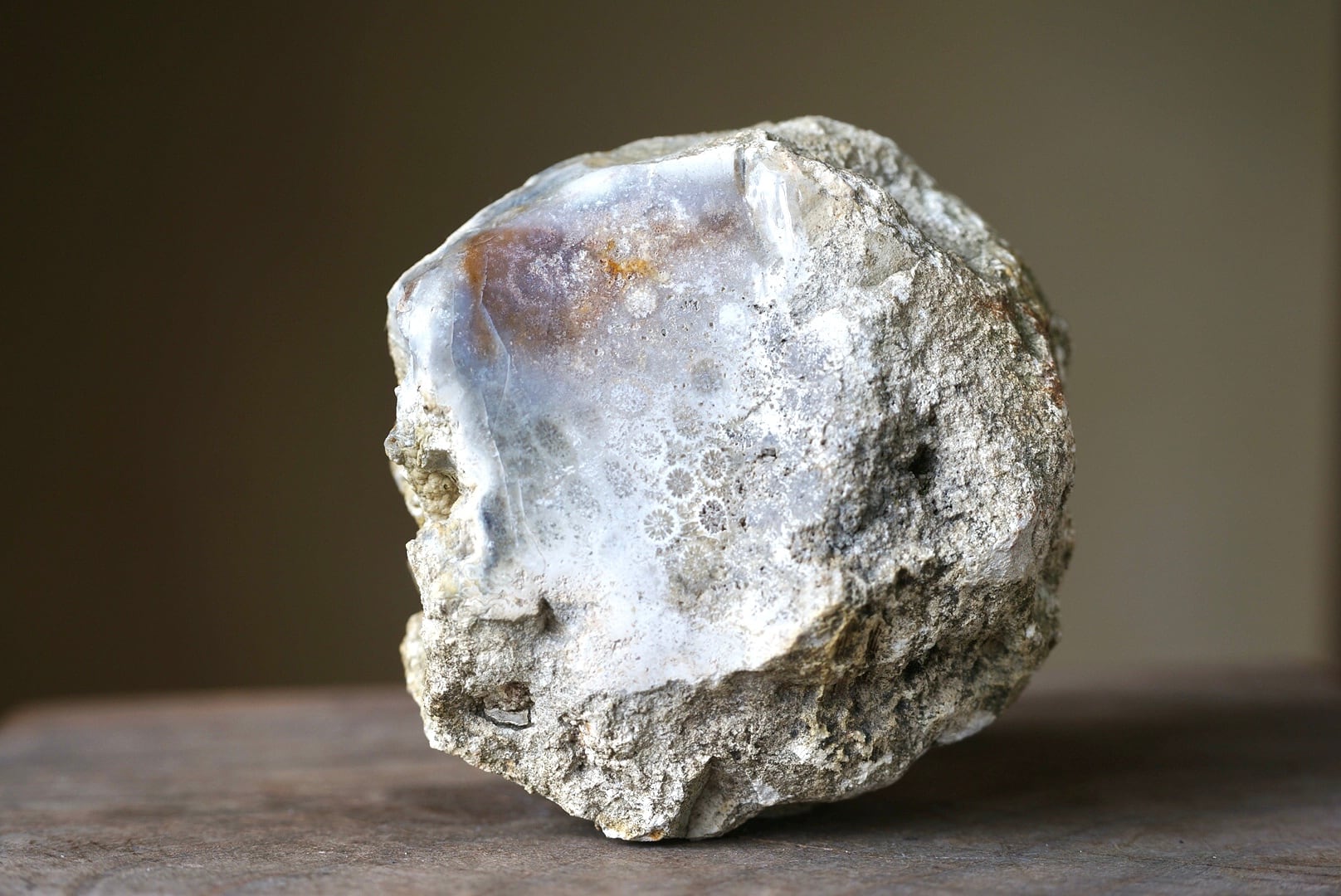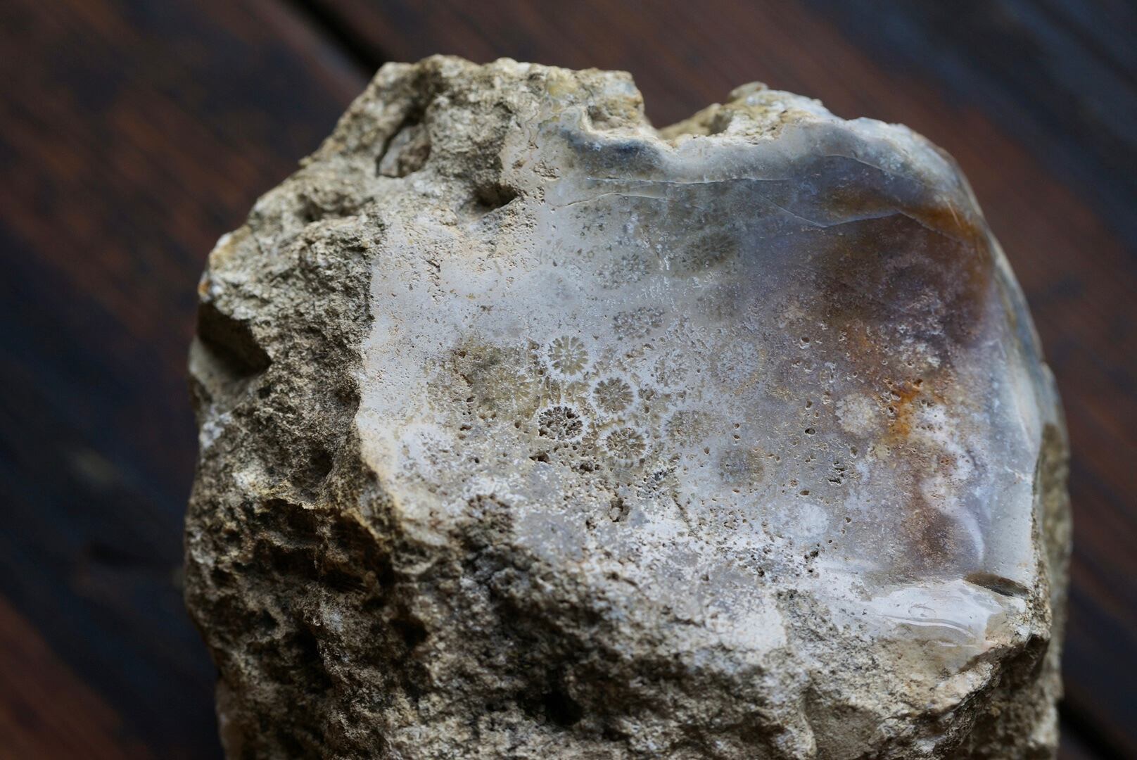 一部分のみが研磨され、瑪瑙化が進み始めている様子を覗くことができます。