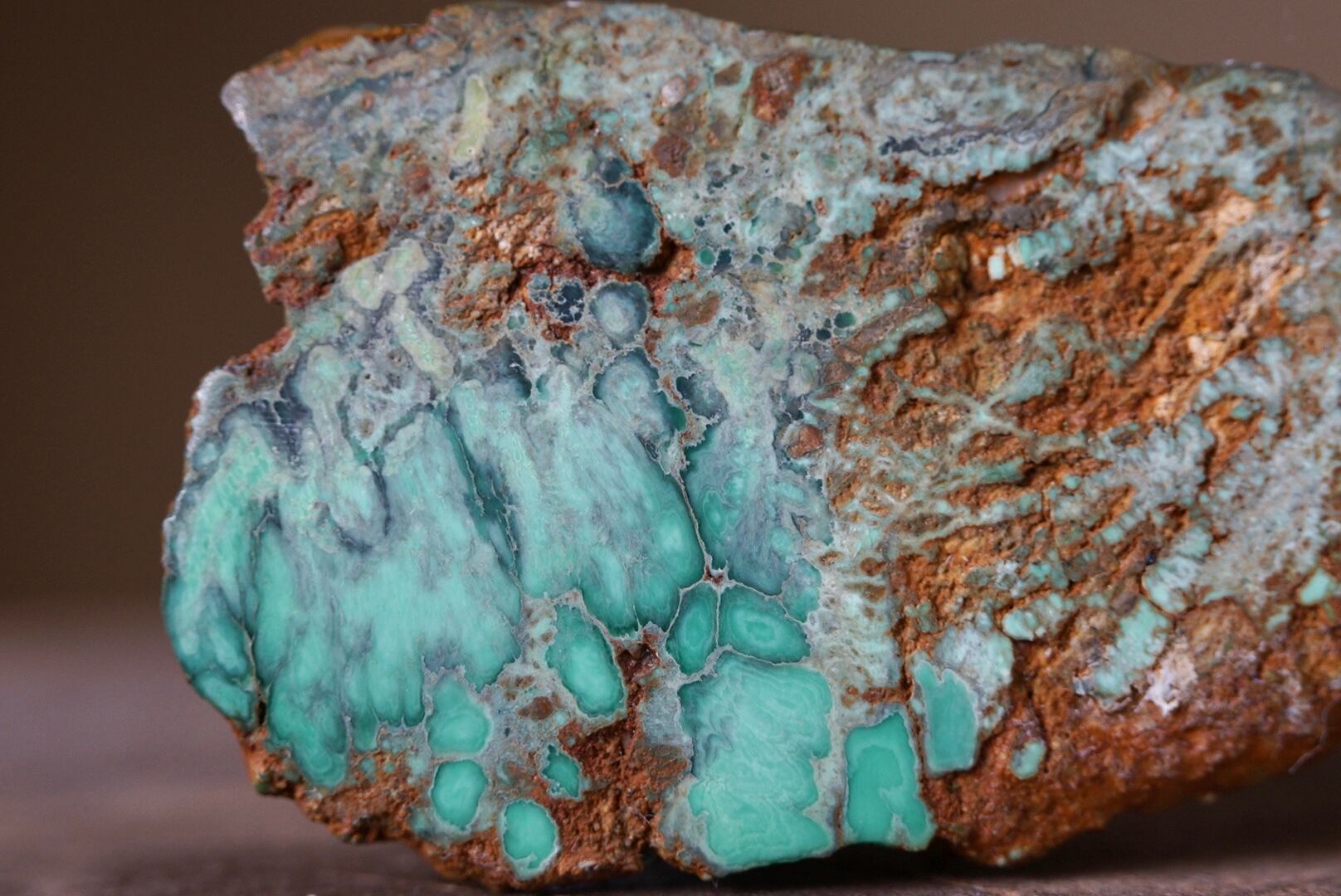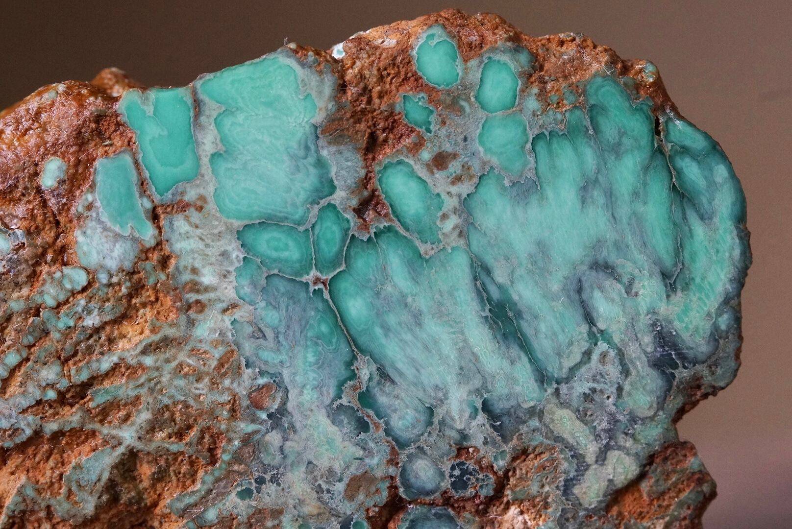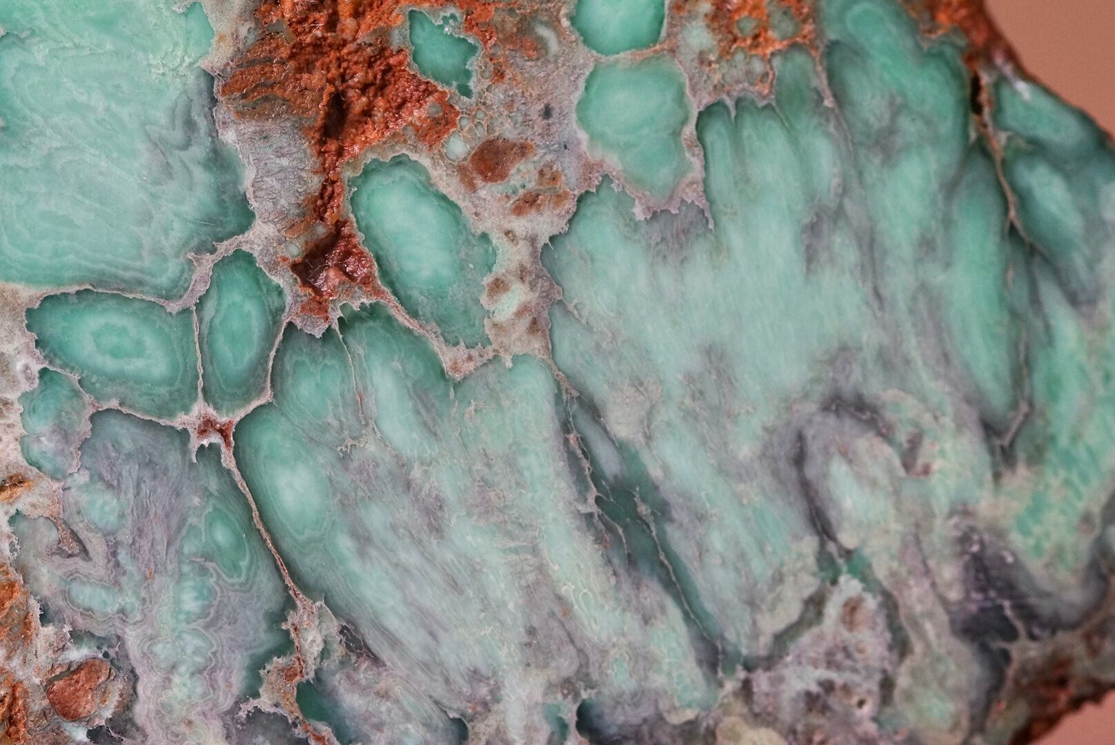 ユタ州産のものよりも濃いグリーンが特徴で、切断面の見せる風景は非常に細密で情報量の多い画面となっています。