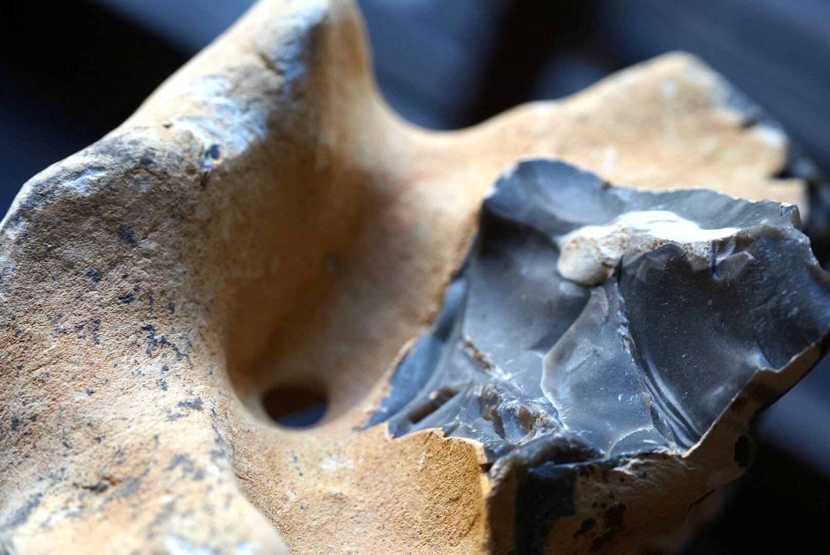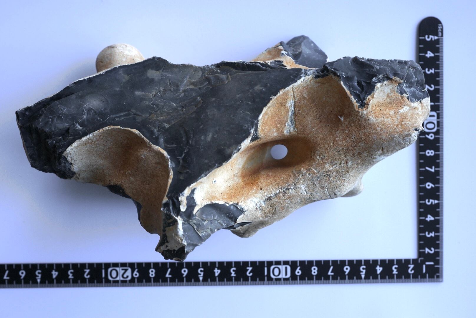 石英質の堆積岩で火打石にも使用されるイギリス産フリント塊です。