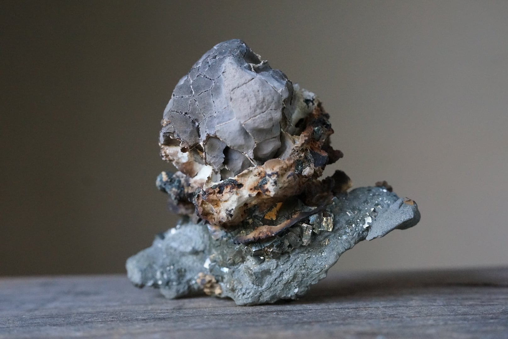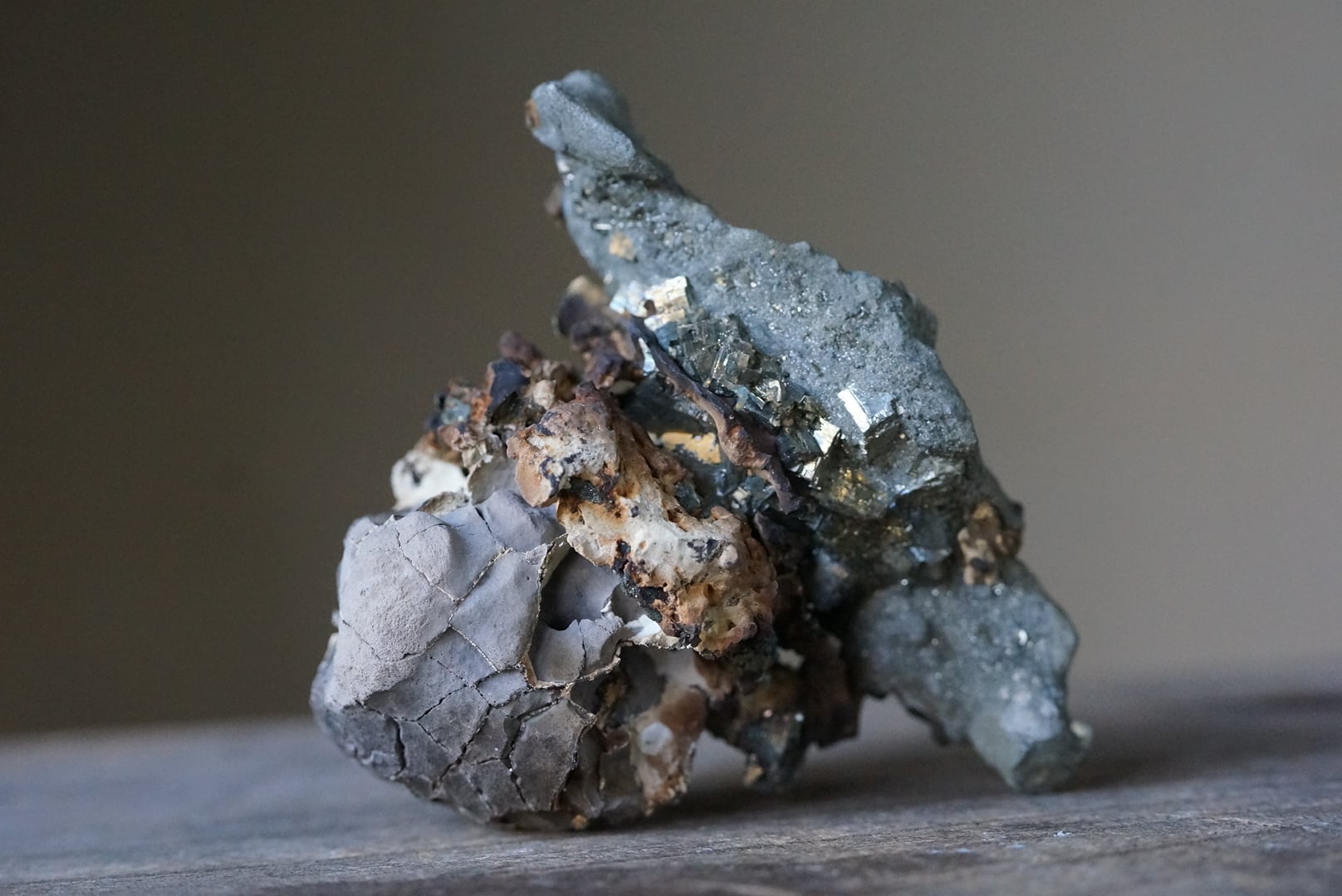 球状のコア部分とメタリックなパイライトのコンビネーションが、どこかディストピアSF的な退廃したムードを漂わせています。