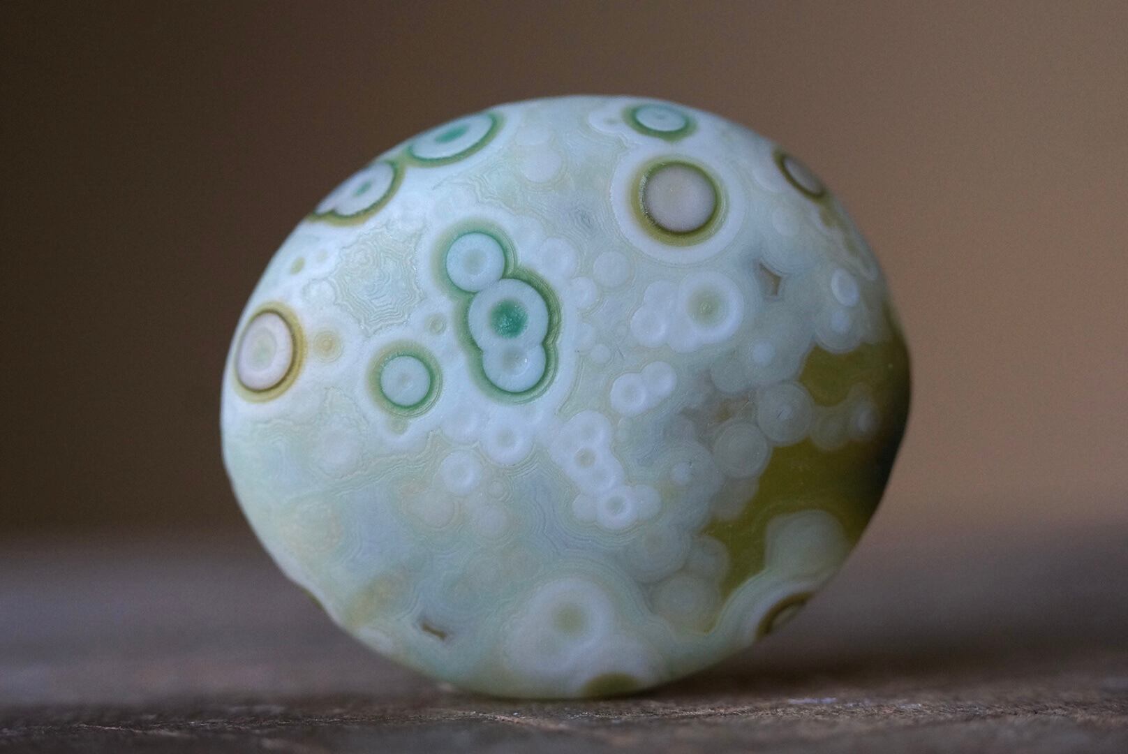 白縁の円模様が美しく浮かんだゴビアゲートです。