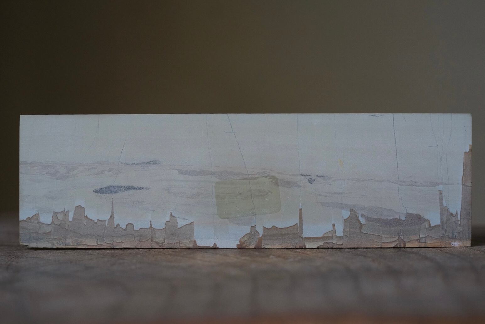 「Paesine」とはイタリア語で風景を意味し、荒涼な大地と空や海を思わせるその図像は見る者を幻想の世界へ誘います。