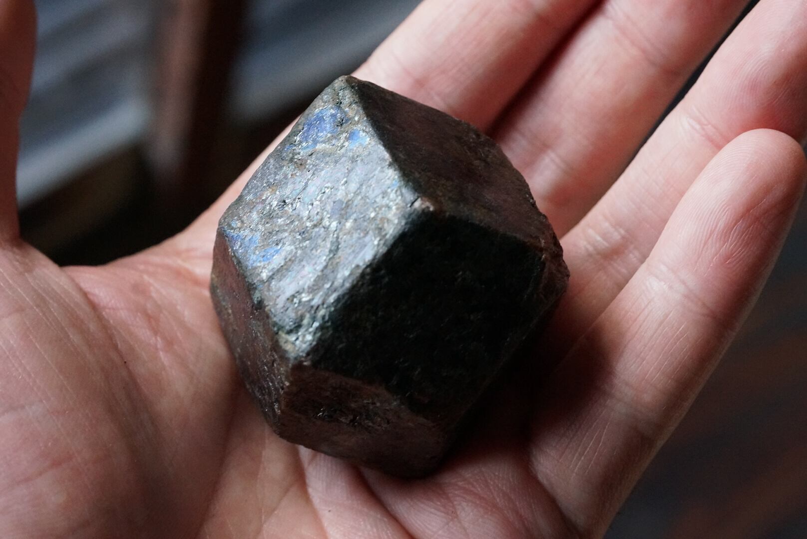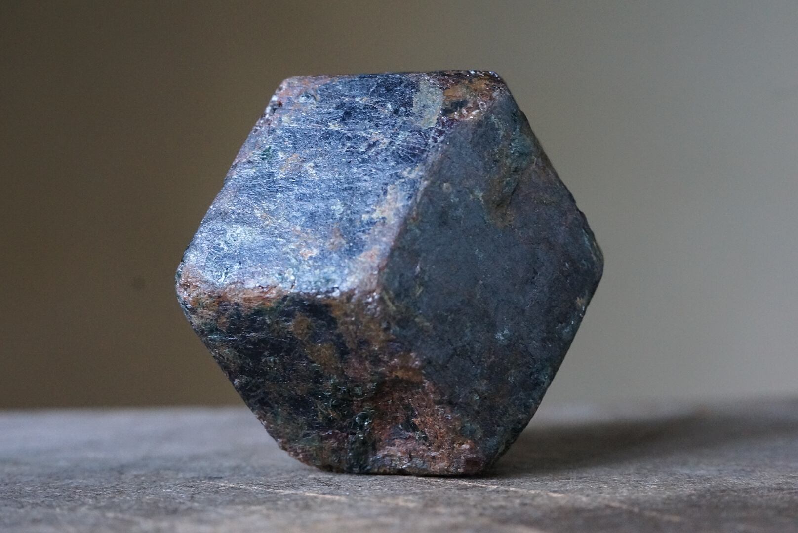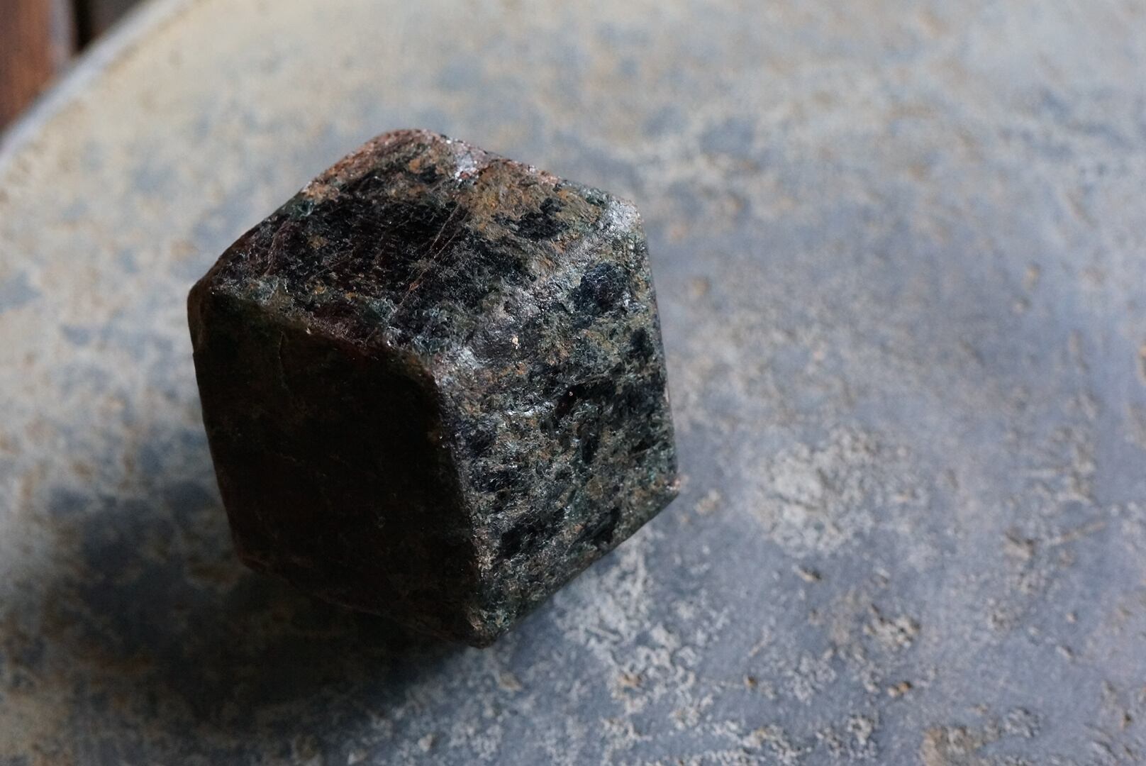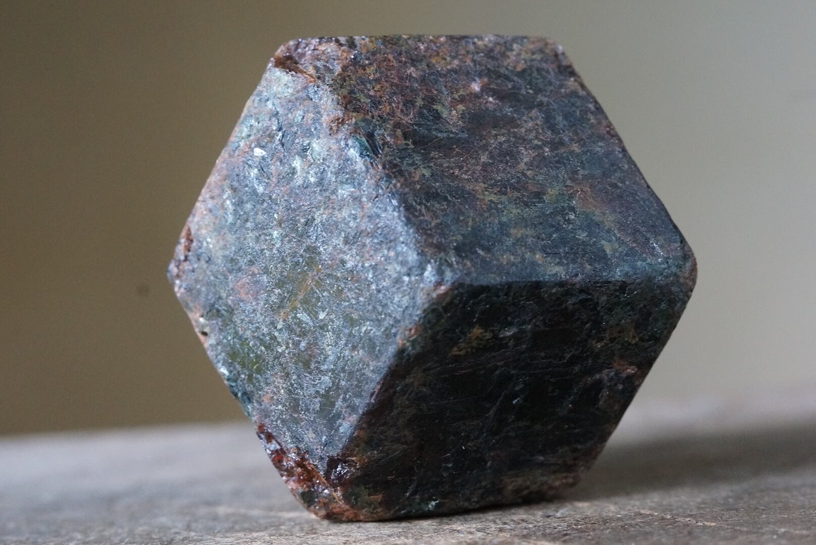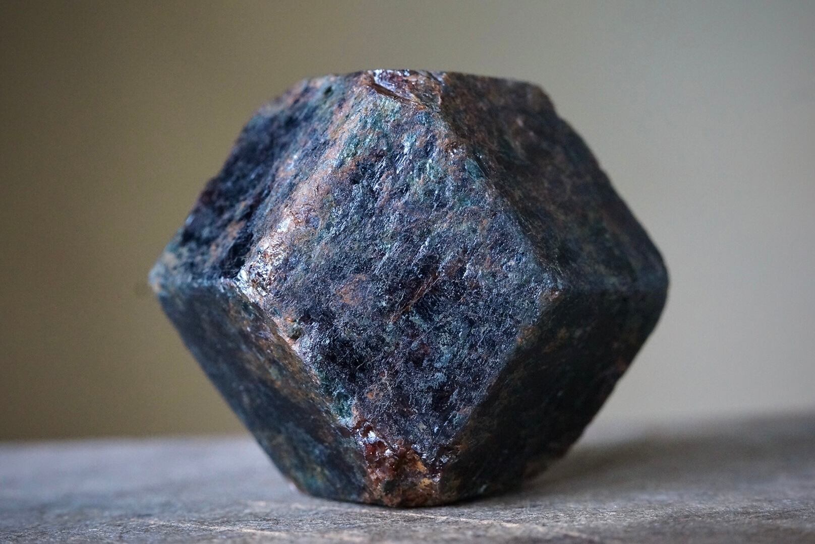 大型ながら菱形十二面体が美しく表れたアルマンディン・ガーネット原石です。