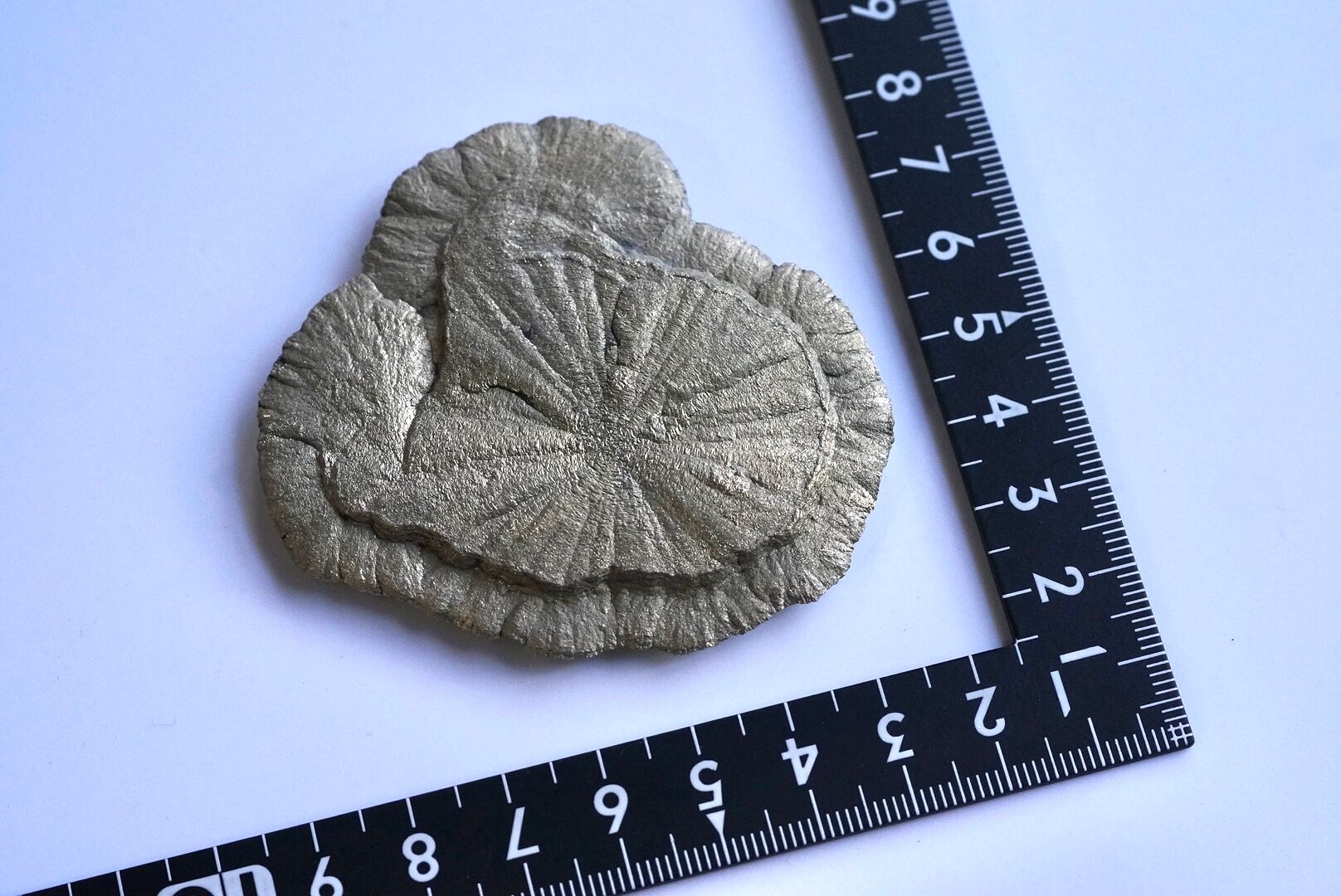 花や太陽のように円盤状に結晶化したイリノイ州特有のパイライトです。