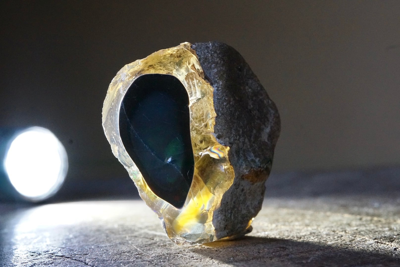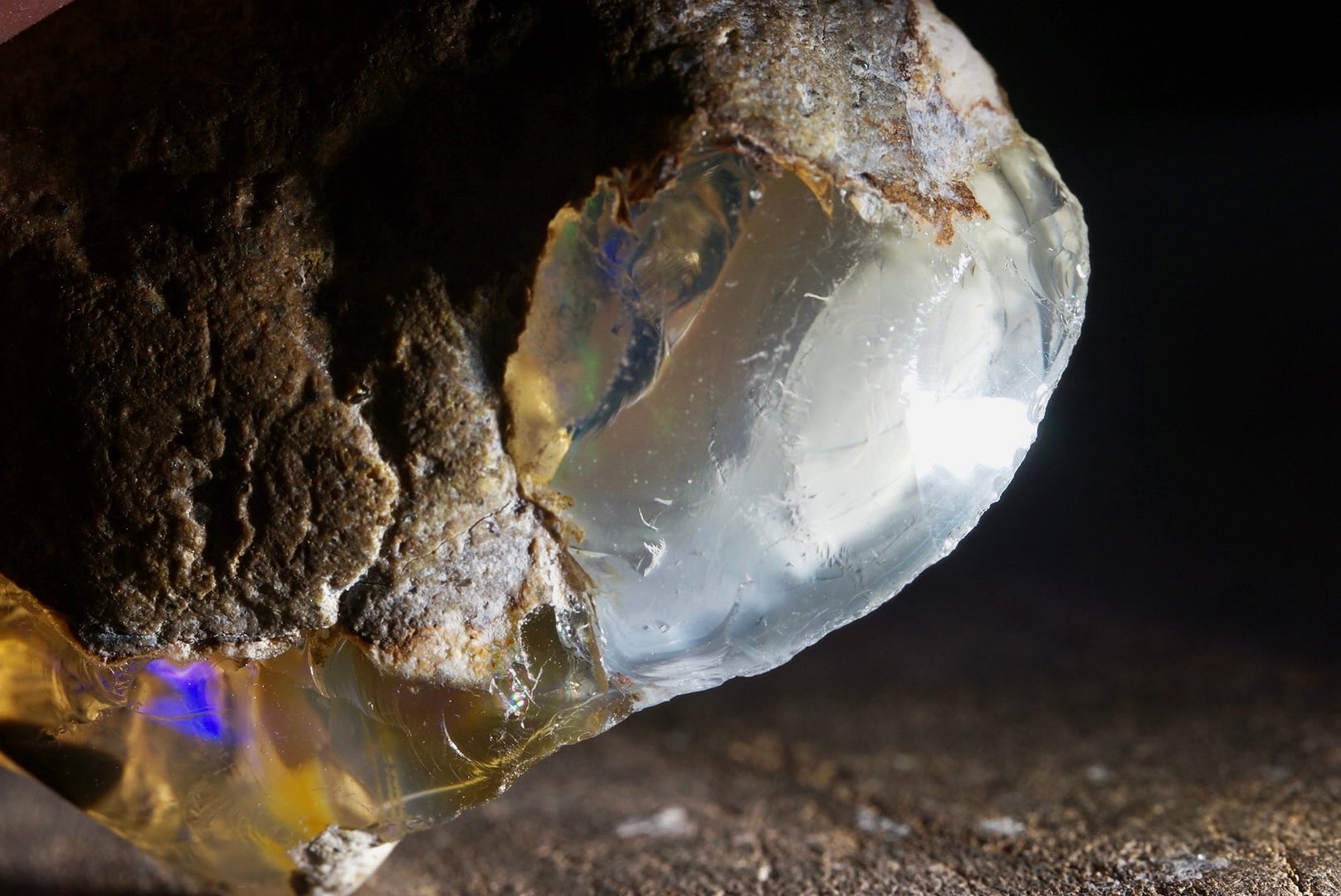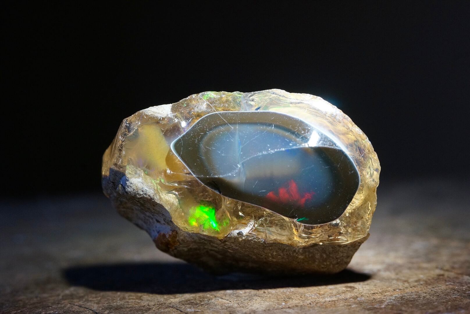 透明なオパールは美しい遊色を示し、千変万化の虹色をお楽しみいただけます。