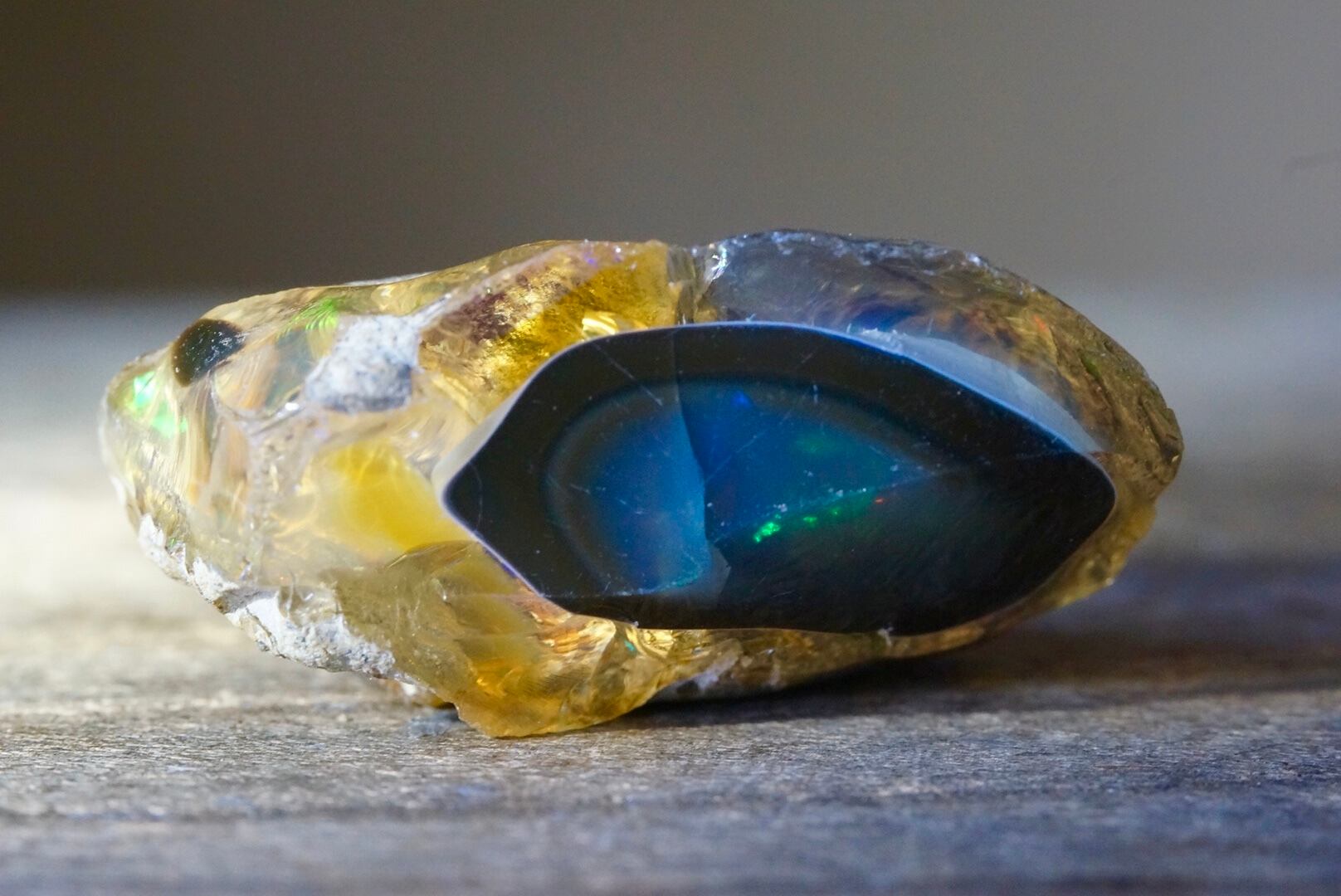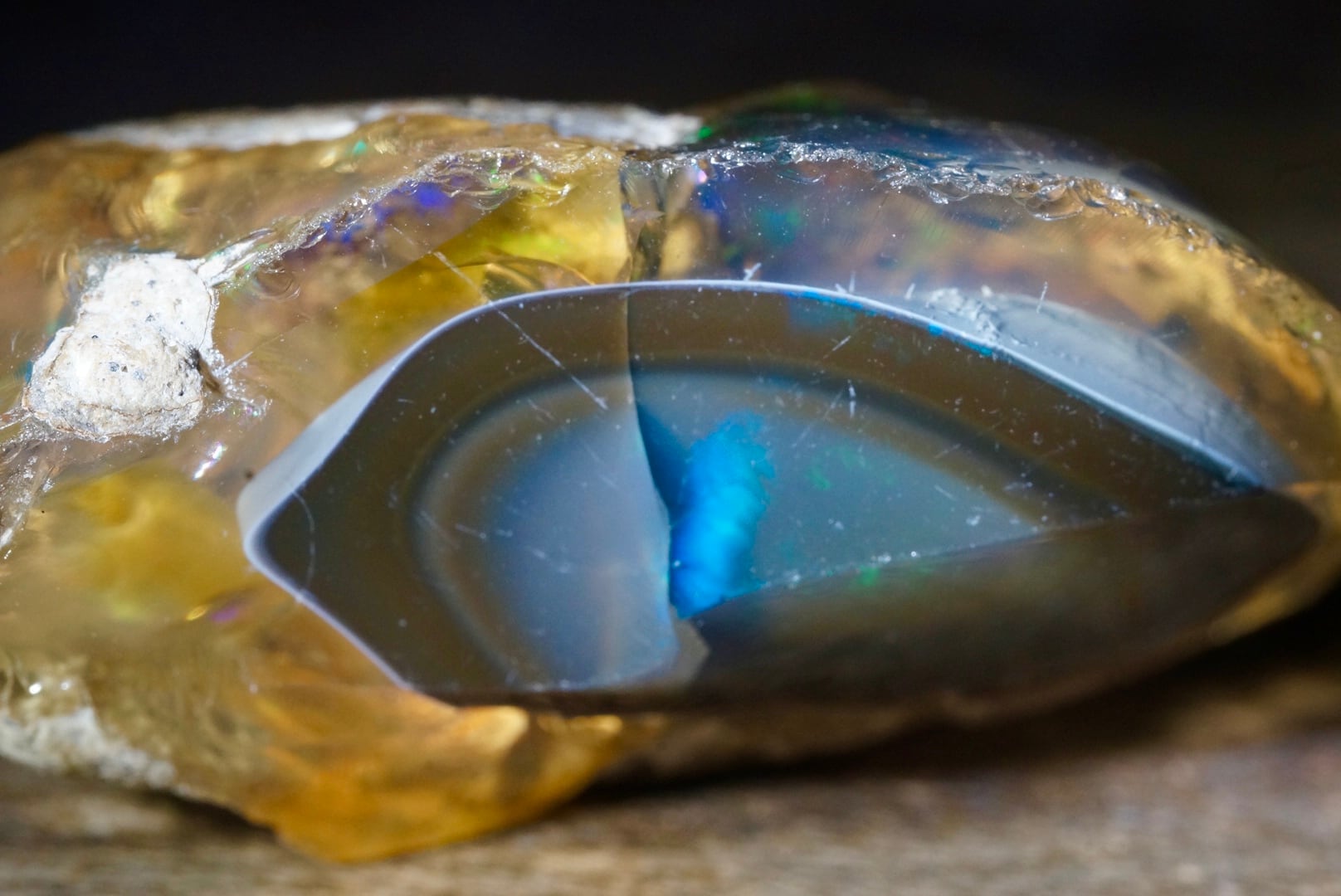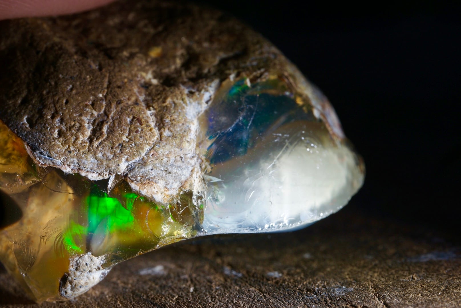 透明なオパールは美しい遊色を示し、千変万化の虹色をお楽しみいただけます。