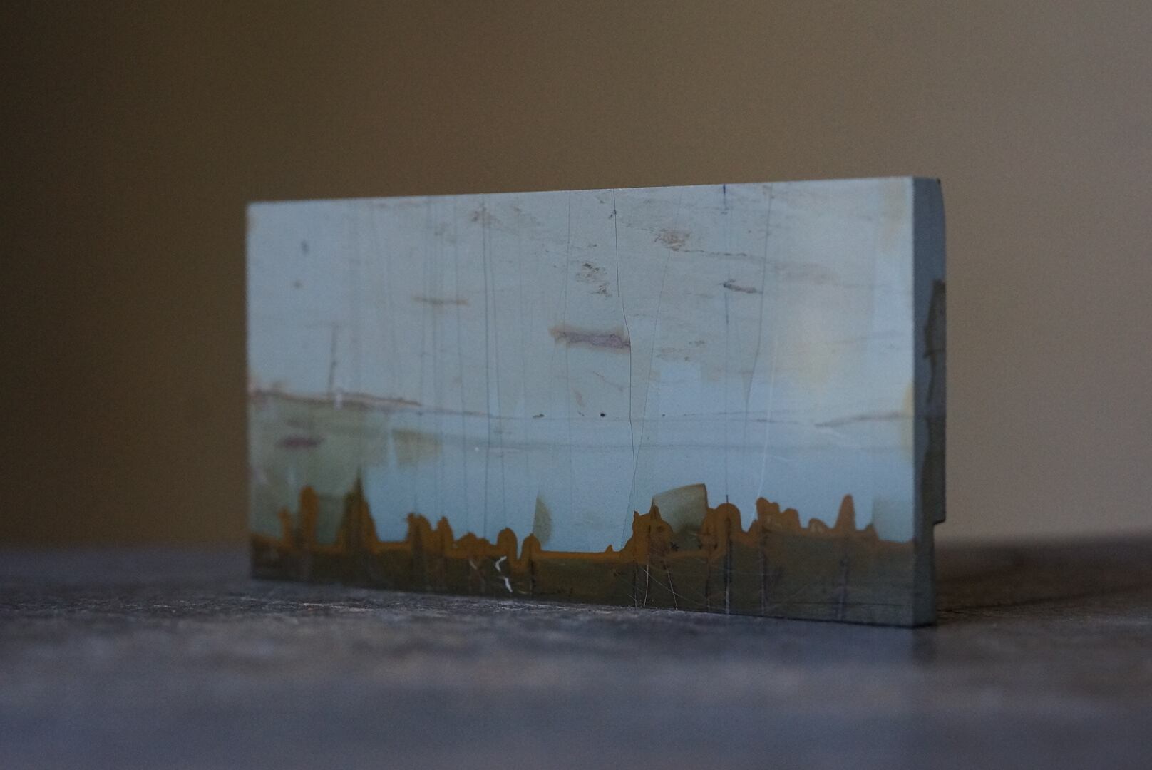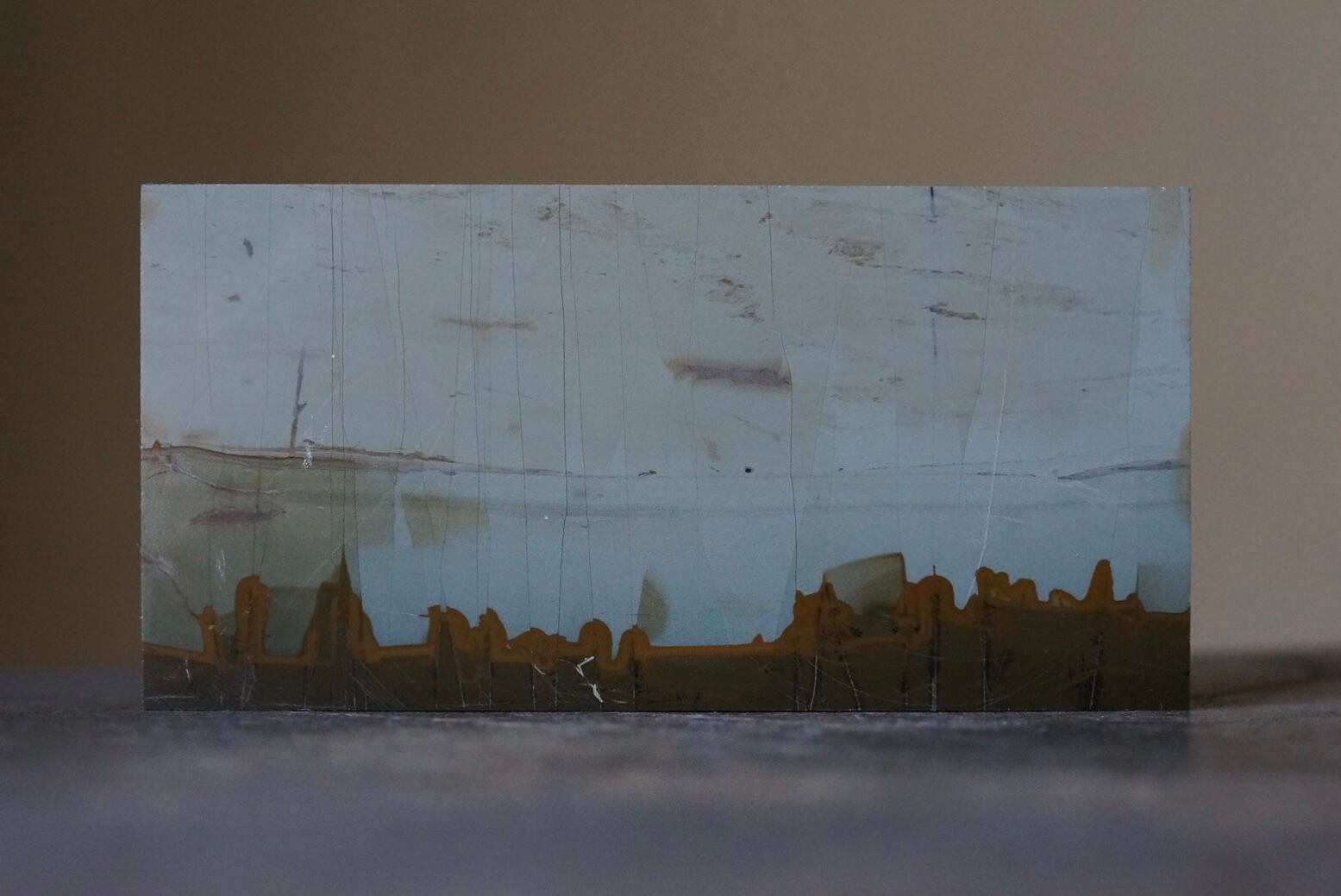 「Paesine」とはイタリア語で風景を意味し、荒涼な大地と空や海を思わせるその図像は見る者を幻想の世界へ誘います。