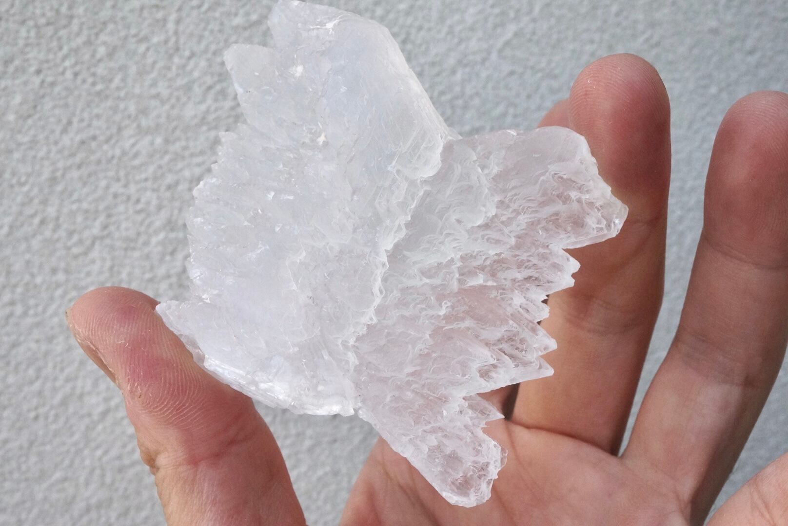 本石は手のひら大のそこまで大きなものではございませんが、蝶の翅のように開いたクリスタルが極めて無垢な美しさを誇っています。