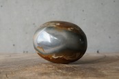 砂漠のような景色が鏡写しとなって表れた、非常に珍しいパームストーン状の風景石です。