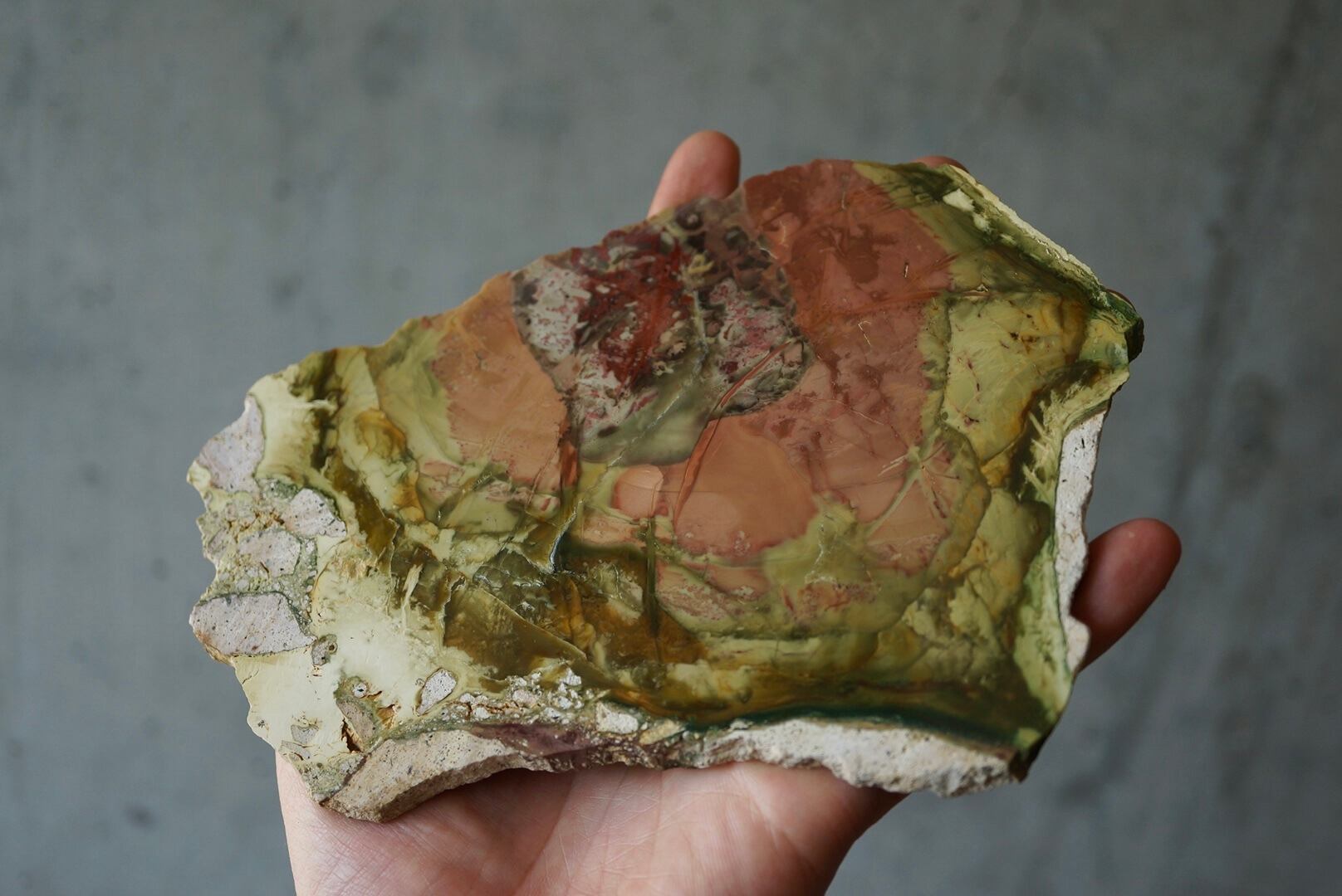 片面鏡面研磨され、鮮やかな色彩がみずみずしく表れています。
