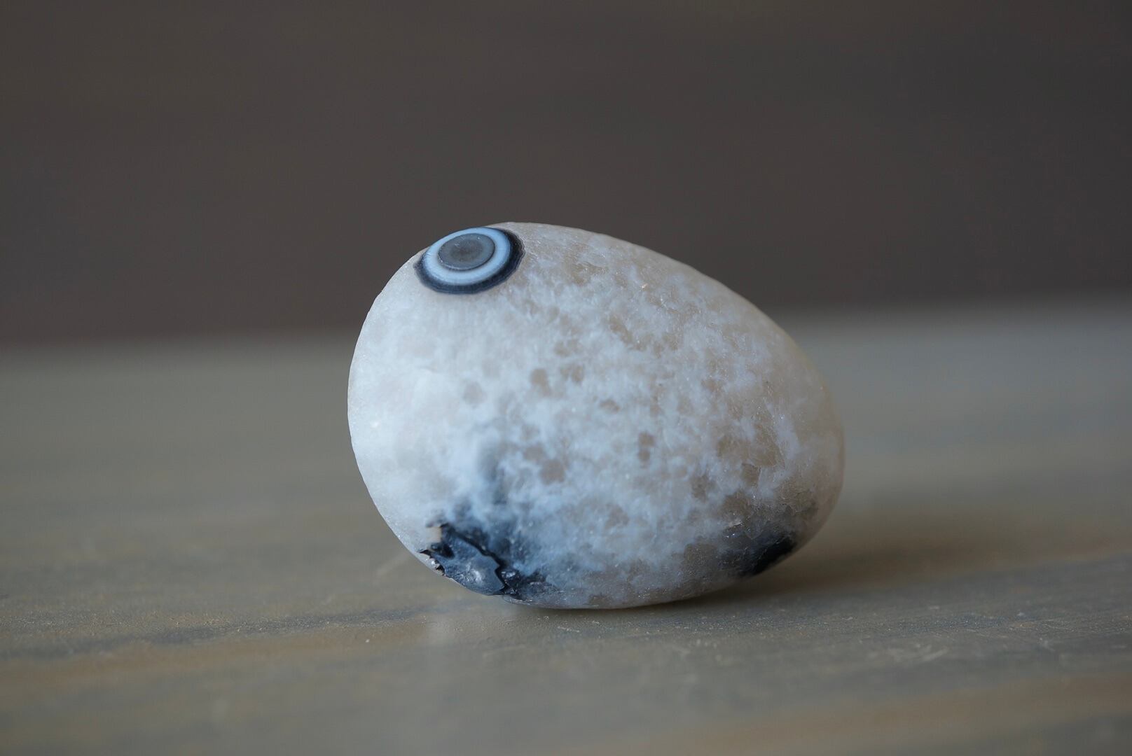 本石は石英質のキメ細やかな半透明のボディに可愛らしいひとつ目が浮かんだモノトーンのゴビアゲート。