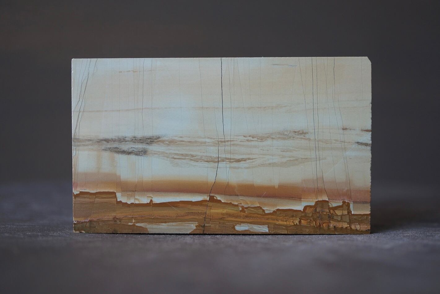 「Paesine」とはイタリア語で風景を意味し、荒涼な大地と空や海を思わせるその図像は見る者を幻想の世界へ誘います。
