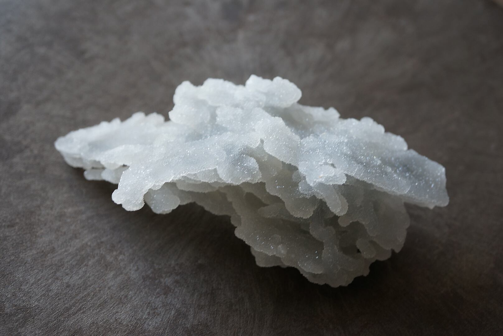 鍾乳状のカルセドニーがキラキラと白く輝いています。