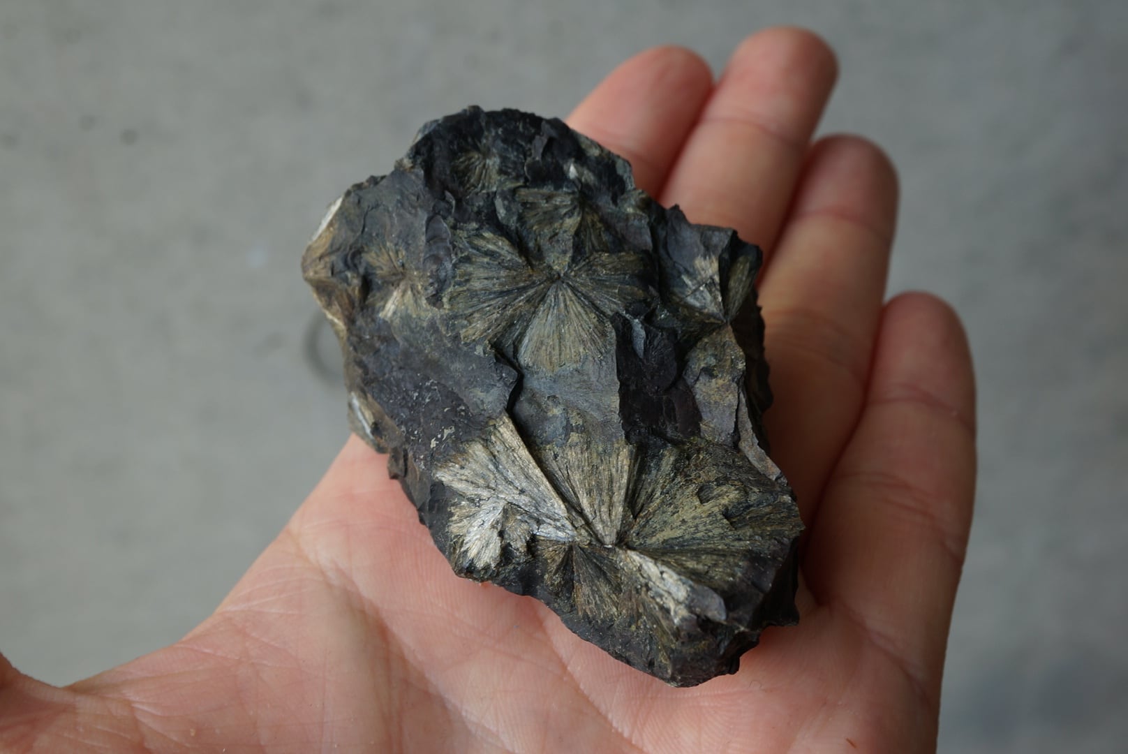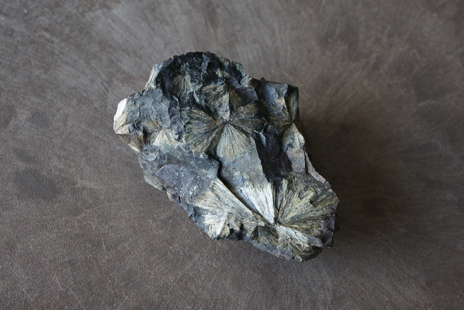 花のような放射状の模様は金属のような鈍色の光沢を表します。