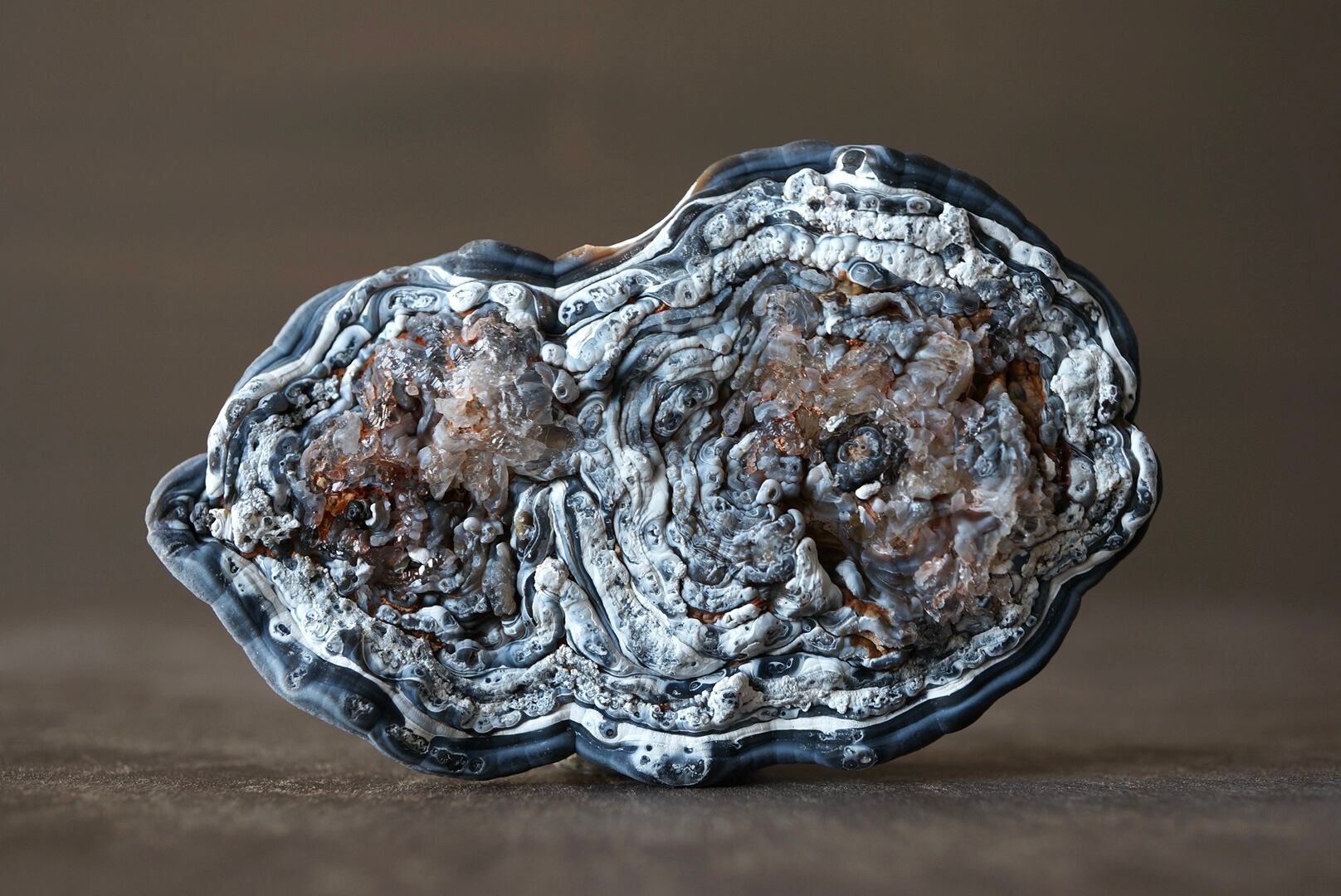 帯状のカルセドニーはキラキラと輝き、銀河の星星や砂糖菓子のようにも見えます。