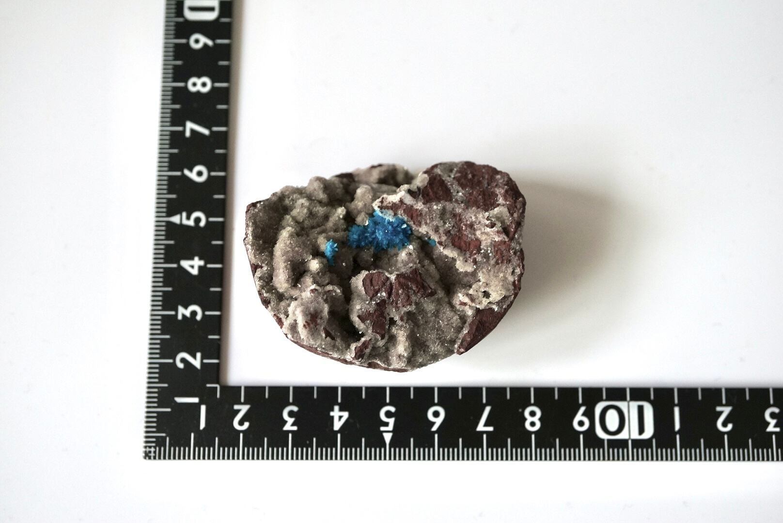 鮮烈なブルーのカバンサイトを包み守るようなドゥルージーな輝沸石(ヒューランダイト)が細やかな煌きを放っています。