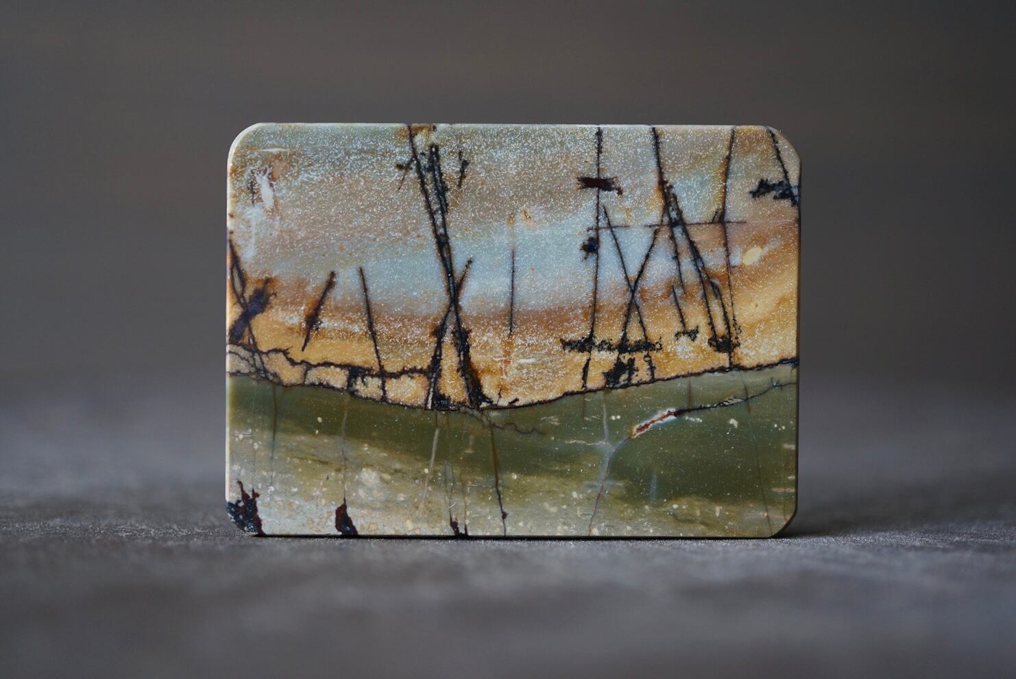 カボションタイプのものは時折見かけますが、本石は絵画的に切り取られた希少なスクエア型。