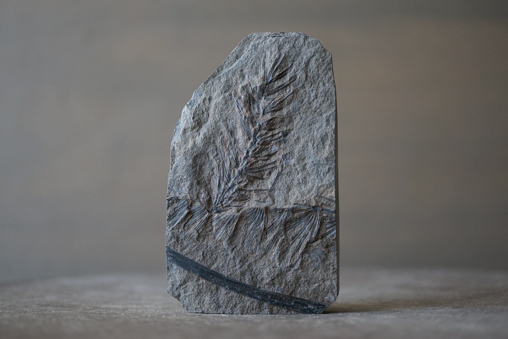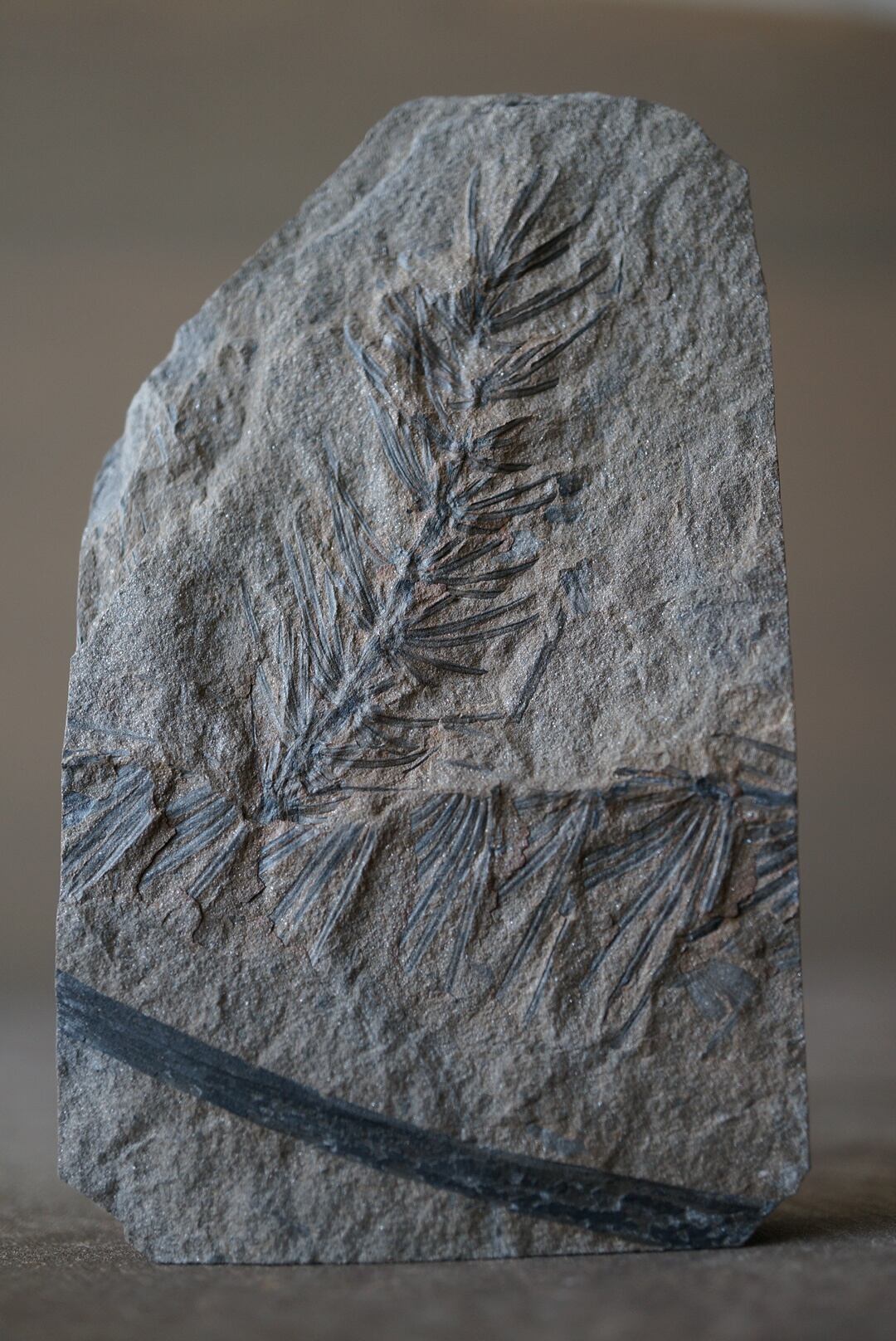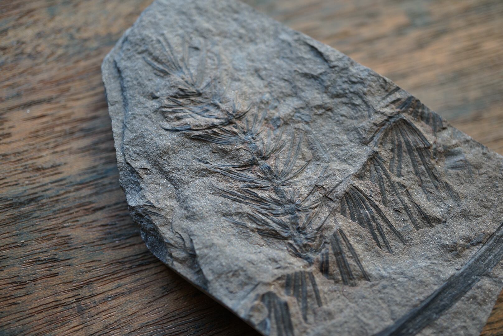 フランス産 約3億年前(石炭紀後期)のシダ植物(トクサ類)の化石です。